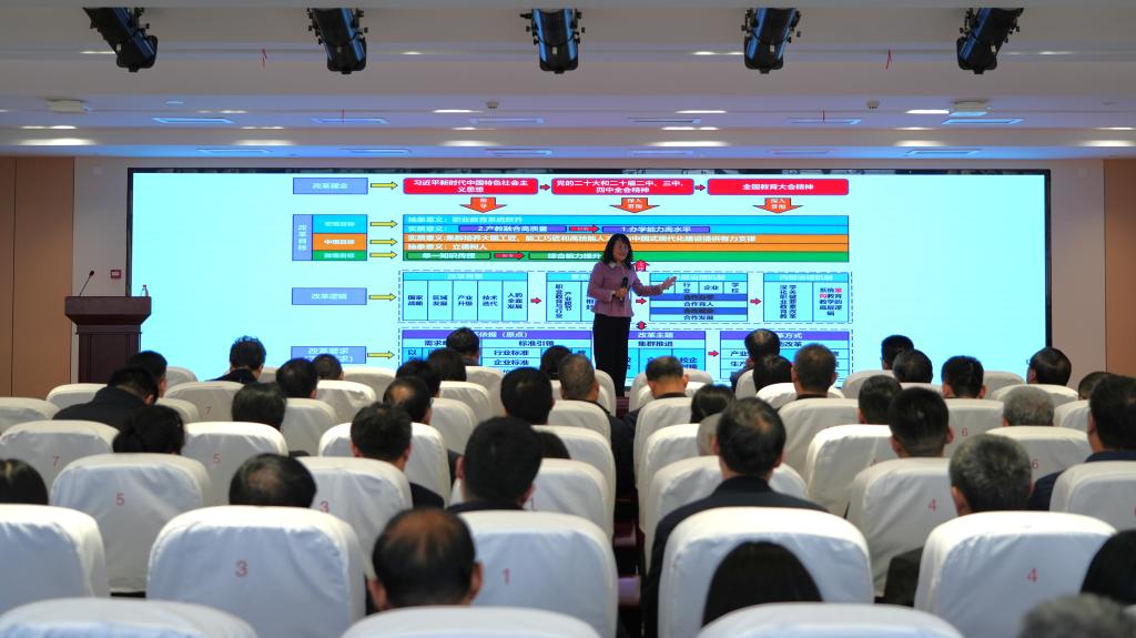 赵京岚教授围绕《教育部教职成〔2026〕1号文政策解读与实践路径》作主旨报告,从“时代引领、顶层设计、实践思考、向新出发”四大维度,为全院高层次人才精准解读政策、明晰实践路径。报告中,她首先立足政策背景,深入阐释了1号文的四大工作原则、主要目标及核心内容,帮助参会人员精准把握政策导向;随后聚焦教学关键要素改革,围绕精准对接产业需求动态调整专业布局、绘制能力图谱科学设计课程体系、推动教材形态多元化创新、打造高素质“双师型”教师队伍、建设多元融合、虚实结合的产教融合实习实训基地等方面,进行了系统全面的讲解;同时,从教师专业发展路径指引、“三步走”工作目标规划、系统性思维创新工作机制三个层面,为大家搭建了从政策解读到落地执行的清晰路径;最后,以“向新出发”为落脚点,提出实施高技能人才集群培养计划、建立“三组长”牵头的组织体制、构建教学关键要素联动改革机制等具体建议,为学院高质量发展提供了可落地、可操作的实践方案。