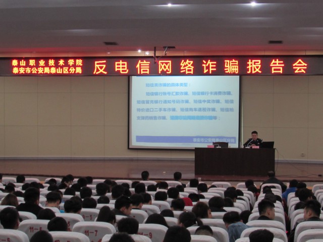 学院于3月19日下午在图书馆报告厅举办“反电信网络诈骗”安全报告会,安全保卫处邀请泰安市公安局泰山区分局刑警大队张警官来院为各系师生讲解“反电信网络诈骗”安全知识。