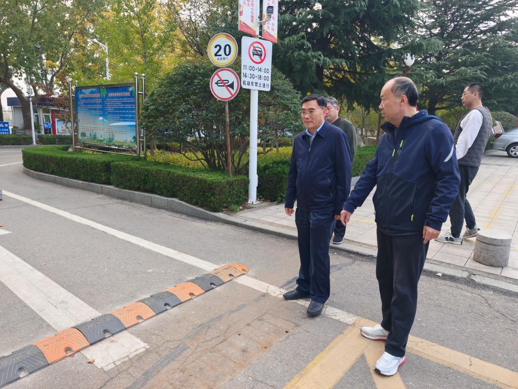 陈士兵对校园周边配套设施、学生公寓及教学环境进行现场检查,重点关注消防安全、学校电动车限速情况及加大对校外机构违规进校查处力度,坚决遏制校外机构张贴广告牟利行为;同时,要加强师生安全教育,定期开展应急演练和培训,针对教师与学生干部进行实操教学,多维度组织主题活动,通过新媒体平台科普宣传安全防范与防诈知识,切实提高师生应急避险能力。