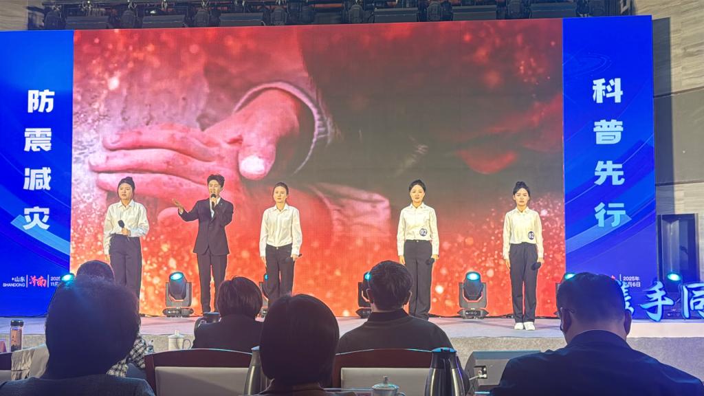 2025年11月6日,山东省大学生防震减灾诗文朗诵大赛决赛在山东省防震减灾科普馆顺利举行。经过激烈角逐,由我校教育与艺术系牛婷婷老师指导,徐喆、尚笑宇、刘笑蕊、赵彦南、陈新宇五名同学组成的参赛团队荣获大赛三等奖,充分展现了泰职学子良好的专业素养与精神风貌。