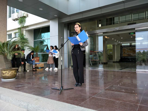 4月24日,财经系在致远楼前举行升国旗仪式。