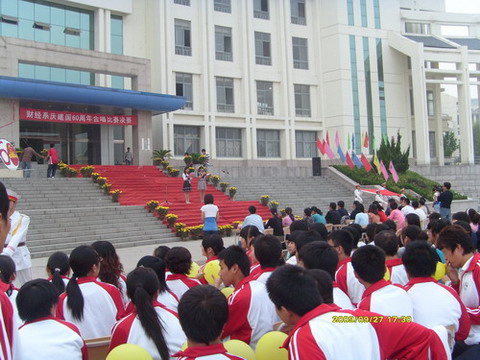 为歌颂和弘扬爱国主义精神、激发学生努力勤奋学习、立志报效祖国的巨大热情,财经系于2009年9月27日下午在青春广场举行了“庆国庆合唱比赛”决赛。