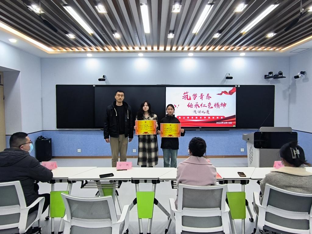 青年一代是与新时代同向同行、共同前进的一代,在时代发展的今天,青年人更应不忘历史,铭记先烈,发扬和传承红色精神。财经系于2024年3月19日于居正楼308举办以“筑梦青春传承红色精神”为主题的演讲比赛,财经系李芬、安然、张川、刘秀玲担任本次比赛的评委。