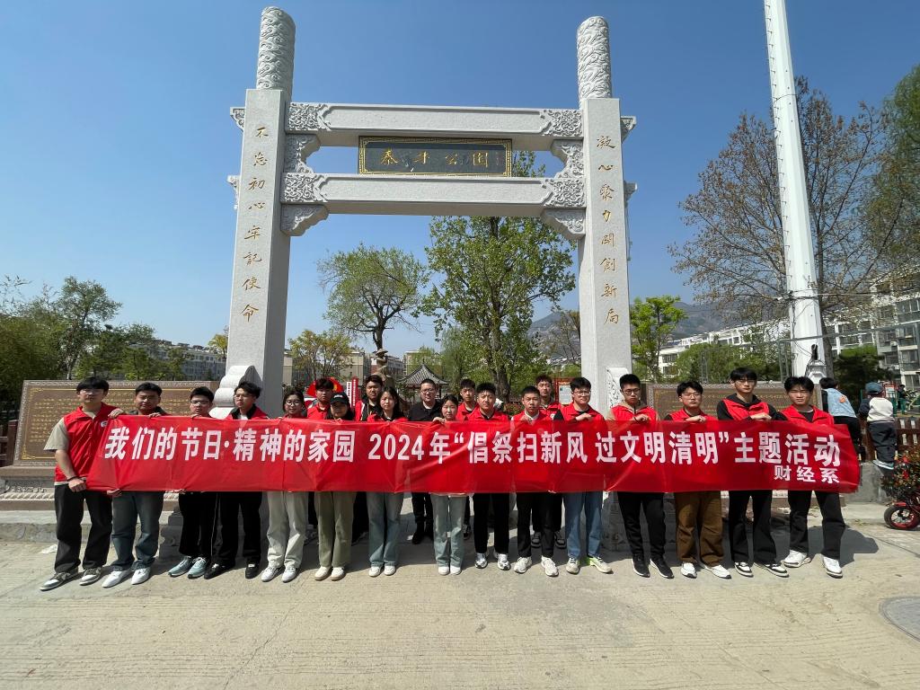 清明节,作为中华民族的传统节日,既是祭祀先人、缅怀英烈的重要时刻,也是弘扬传统文化、彰显文明风尚的重要节点。为打造一个绿色、文明、安全、和谐的清明节,财经系志愿者团队响应社会文明祭扫的号召,积极行动起来,于2024年4月6日在学生科教师张川的带领下前往泰牛公园开展以“倡祭扫新风,过文明清明”为主题的志愿服务活动。