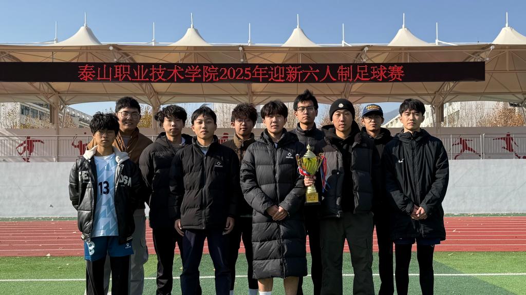 20251126日,泰山职业技术学院2025届足球迎新赛圆满落幕。财经系足球队一路奋勇拼搏,凭借扎实的战术素养与顽强的竞技精神,最终斩获联赛季军。