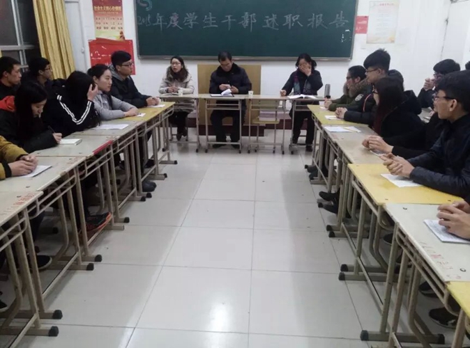 1月6日,财经系召开2015年学生干部述职报告会。财经系副主任王桂珍、学生科副科长路伟出席本次大会。大会上,各班班长总结自己近期的工作成果和不足。关于全班整体的工作提出了意见建议。对于各自班级在系部和学院活动中的表现进行了工作总结,吸取不少宝贵经验。