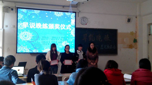 2014年3月13日,财经系在1号教学楼507召开了“早说晚练”总结及座谈会。