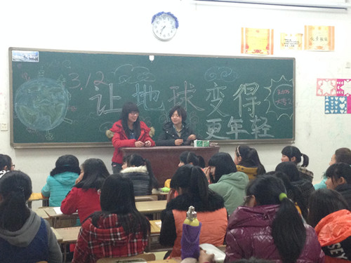 2014310,财经系发起了以“312让地球变得更年青”为主题的班会活动。