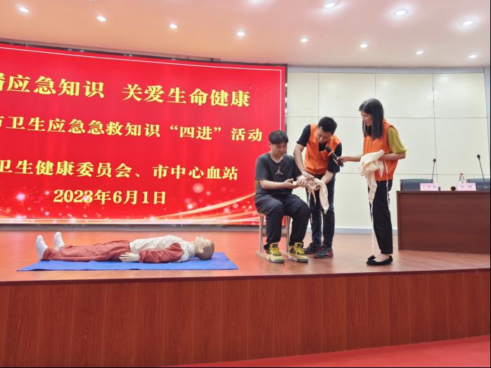 为深入学习贯彻党的二十大精神,泰安市卫生健康委按照上级统一部署安排,全面启动泰安市卫生健康系统解决群众急难愁盼问题百日攻坚行动暨“四进”健康促进行动。2023年6月1日,泰安市中心血站卫生应急救护知识“四进”活动在我院图书馆报告厅举办,财经系副主任王桂珍主持活动。