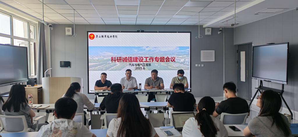 为积极响应学校关于加强科研诚信建设的号召,进一步营造风清气正的科研环境,提升全系教师的科研诚信意识,6月3日,汽电系于智能制造大楼C503成功召开科研诚信建设月主题工作会议,系部内全体教职工参会。