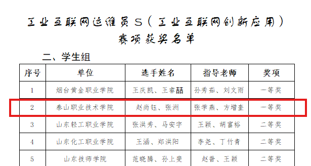 学校荣获第三届全国工业和信息化技术技能大赛山东省选拔赛工业互联网运维员S(工业互联网创新应用)赛项一等奖