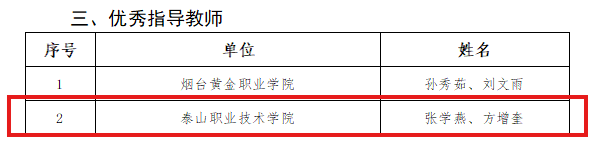 10月31日-11月1日,第三届全国工业和信息化技术技能大赛山东省选拔赛工业互联网运维员S(工业互联网创新应用)赛项于烟台黄金职业学院举行,全省共24支队伍参赛。汽车与电气工程系专业教师方增奎、张学燕指导学生赵尚钰、张洲荣获一等奖,并获优秀指导教师称号。