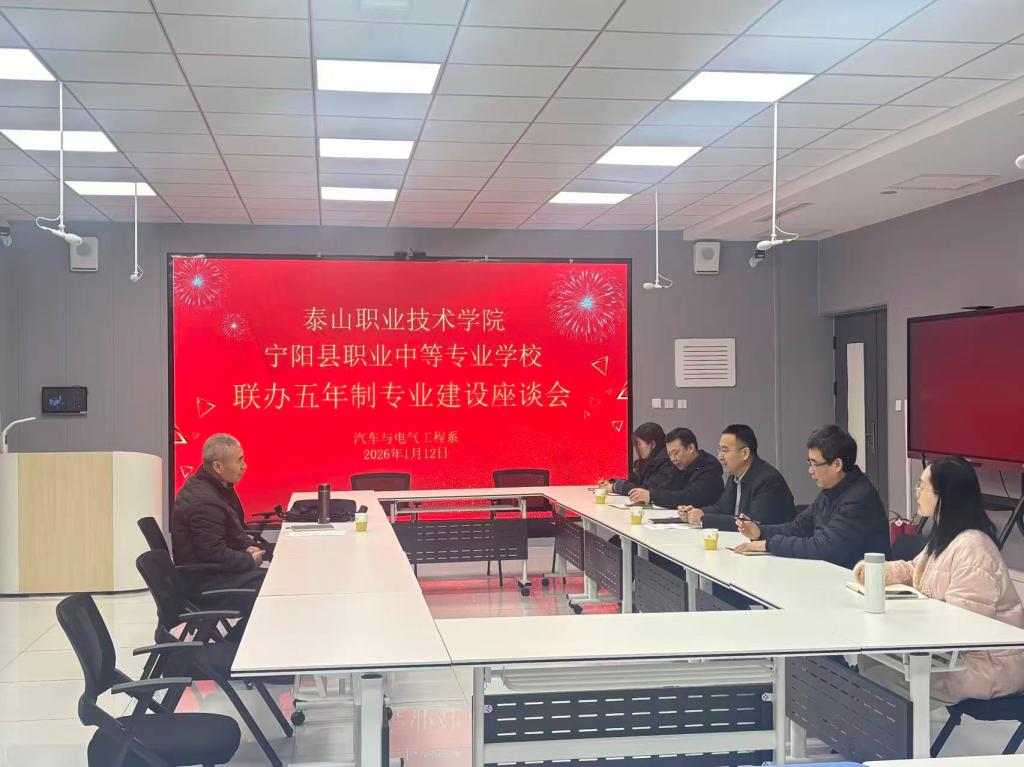 1月12日上午,泰山职业技术学院与宁阳县中等专业学校联办五年制专业建设座谈会在我校智能制造大楼C503举行。汽车与电气工程系党总支书记高培金及相关负责人参加座谈。