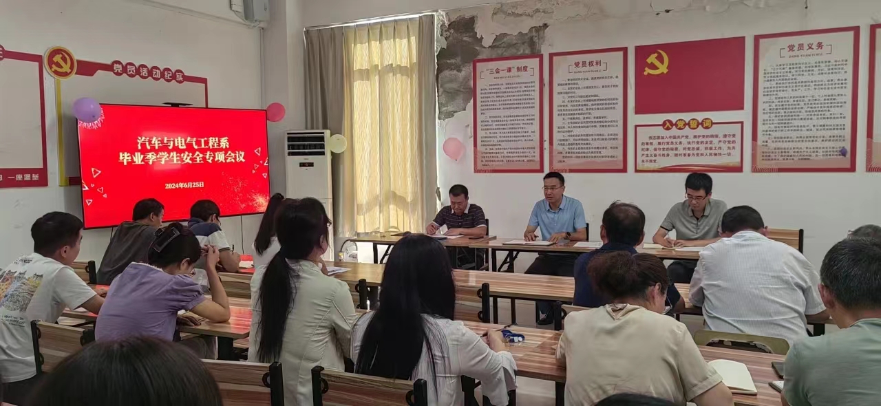 为了进一步强化学生宿舍的安全管理,保障学生的生命安全,并为学生打造一个文明、舒适、安全且整洁的学习与生活环境,汽车与电气工程系于6月25日召开了宿舍安全相关班主任会议。汽电系各班班主任齐聚一堂,共同探讨并落实宿舍安全管理的相关事宜。