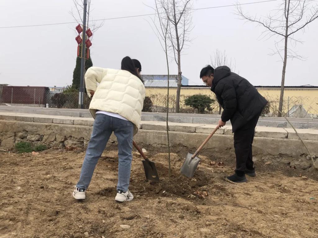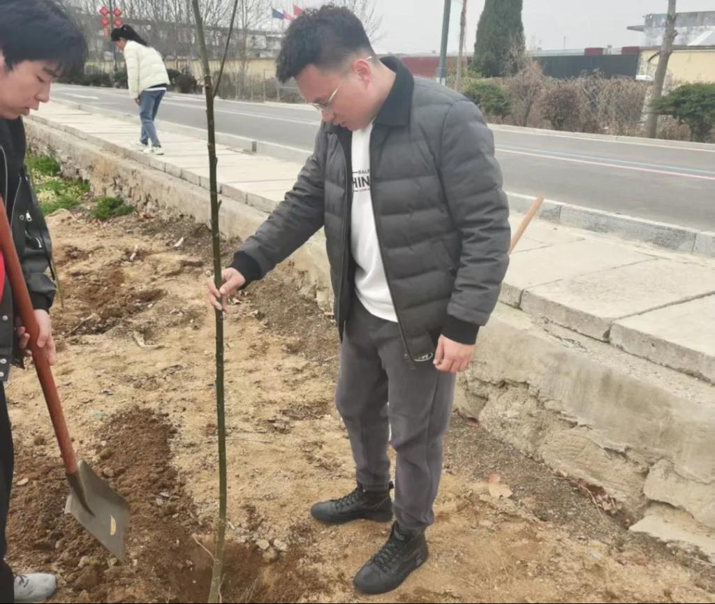 志愿者们以小组为单位,在老师的带领下,分工协作,挥锹铲土、扶苗填坑、浇水灌溉,干劲十足。活动现场热火朝天,洋溢着青春的气息。经过大家的共同努力,一棵棵新栽种的树苗迎风挺立,为街道增添了一抹新绿。