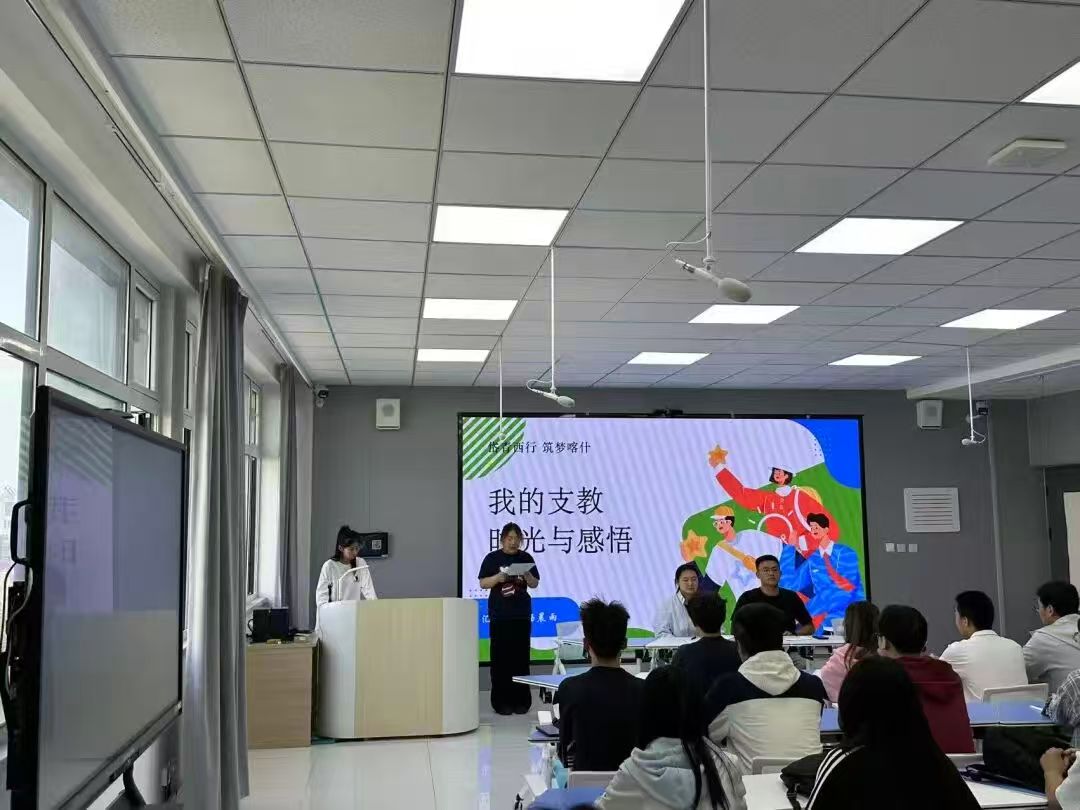 随后,远赴边疆参加志愿服务的优秀团员杨晨雨同学分享了她的经历与感悟。她讲述了在边疆服务期间的所见所闻和成长收获,激励在场团员青年要勇于担当,甘于奉献,让青春在祖国最需要的地方绽放光彩。