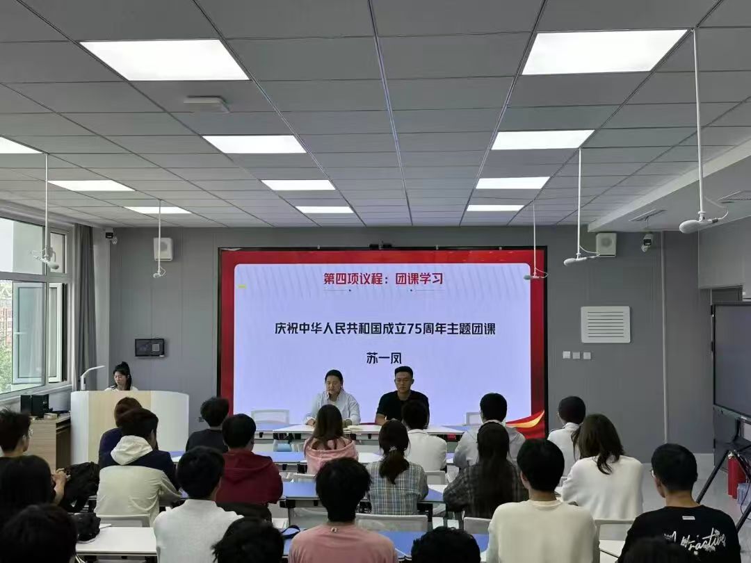 最后,汽电系团总支苏一凤老师带领大家共同学习庆祝中华人民共和国成立75周年主题团课。