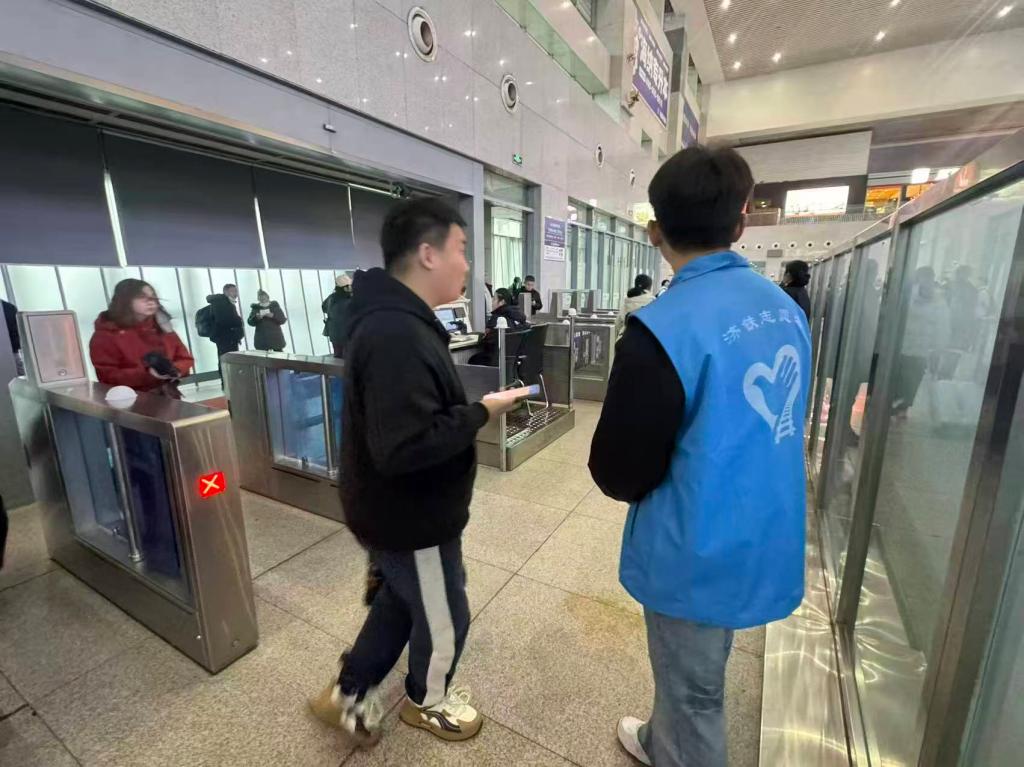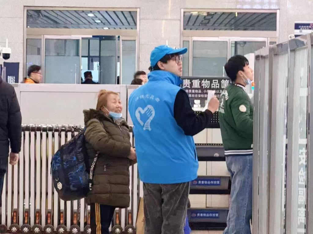 在高铁站的各个服务点位,志愿者们以饱满的热情投入工作:主动为旅客解答乘车信息咨询,清晰指引进站、检票、换乘的路线方向,贴心为携带大件行李的旅客提供搬运帮助;遇到行动不便的老人、儿童及其他特殊旅客,志愿者们第一时间上前帮扶,全程陪同引导,用耐心与细心解决旅客的出行难题。大家分工协作、配合默契,用朴实的行动和真诚的笑容,为来往旅客送上暖心服务,成为高铁站里一道靓丽的青春风景线。