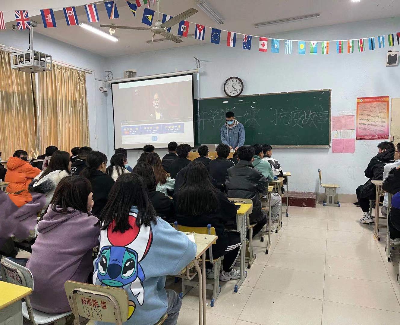 为弘扬伟大抗疫精神,致敬抗疫英雄,科普防控疫情知识,培育伟大的爱国主义精神,国际交流学院于2021年3月15日晚组织全体学生观看《开学第一课——抗“疫”故事》特别节目。