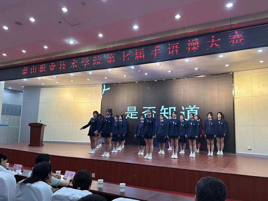 6月7日下午,泰山职业技术学院第七届手语操大赛在图书馆报告厅举行。经过激烈的角逐,国际交流学院参赛作品《夜空中最亮的星》荣获二等奖。