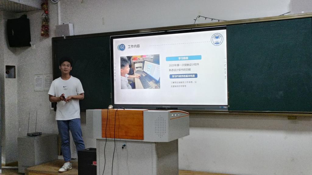 李庆鑫远同学以“书到用时方恨少——我的设计成长之路”为题进行了分享。首先介绍了选择学习设计的原因,自己目前掌握的编辑技能和现阶段的工作内容。学习期间,为了提升自己,更好更快的学习和掌握设计技能,他选择去一所设计单位实习,在实践中增长本领。随后,具体介绍了PS、Ai、Id设计软件的功能,各个软件之间的相同点与不同点。最后展示了在设计成长之路上所参与创作的作品。