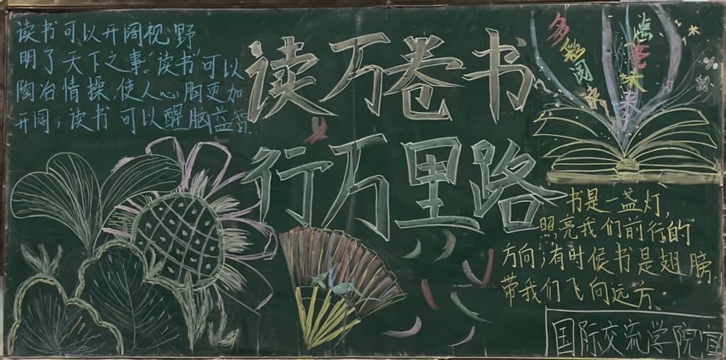 为开展好此次读书征文活动,国际交流学院利用黑板报进行宣传,积极发动学生读好书、好读书,打造“书香校园”。通过生动的画面和精炼的文字,将工匠精神与阅读紧密结合。不仅丰富了校园文化,更在潜移默化中激发了国交学子对工匠精神的感悟和对阅读的热爱。