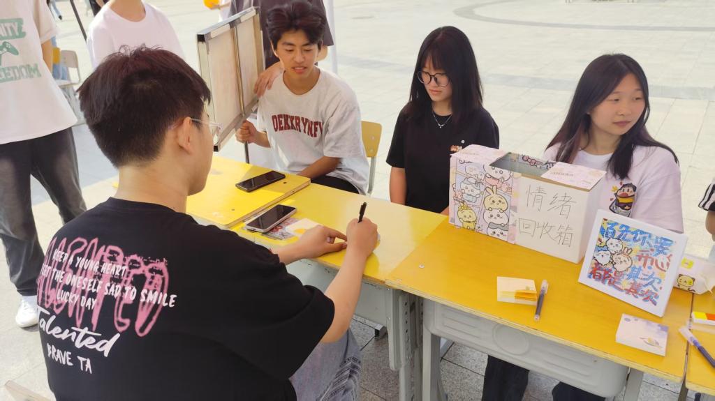 国交学子在青春广场参加“纸张藏心事·指纹印新生”活动。学生匿名写下近期困扰投入回收箱,并在“心灵成长树”按下指纹。随后,大家随机抽取便签,写下鼓励或解决方案,并再次按下指纹,与之前的指纹共同组成爱心。匿名互动营造了安全、接纳的氛围,让学生得以倾诉烦恼、获得支持,感受集体温暖滋养心灵。