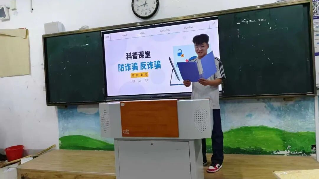 这次的反诈课堂有三部分:黑板板报图文宣讲、教师反诈宣讲讲座、学生反诈科普课堂。
