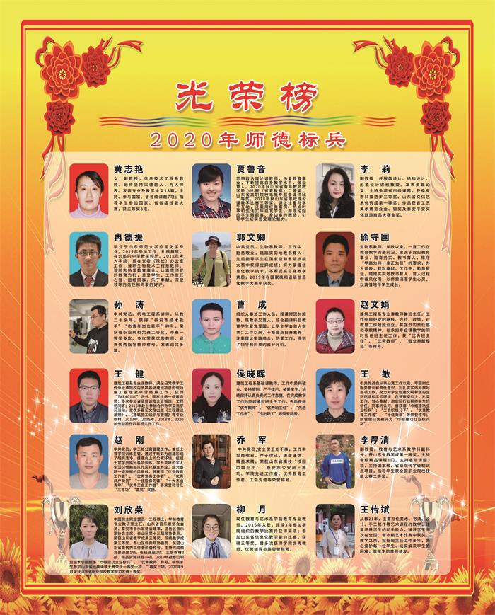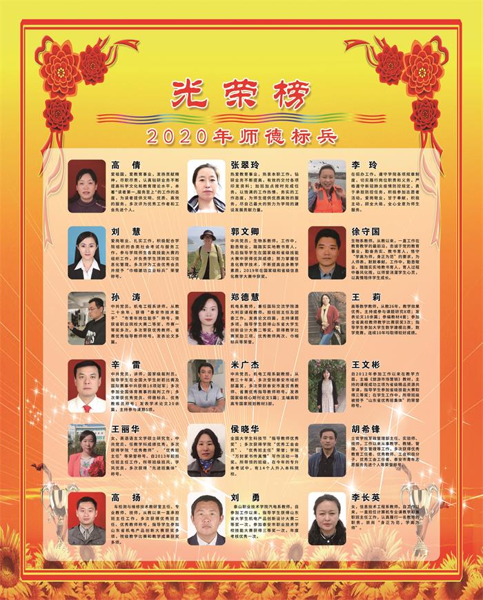 泰山职业技术学院2020年师德标兵光荣榜