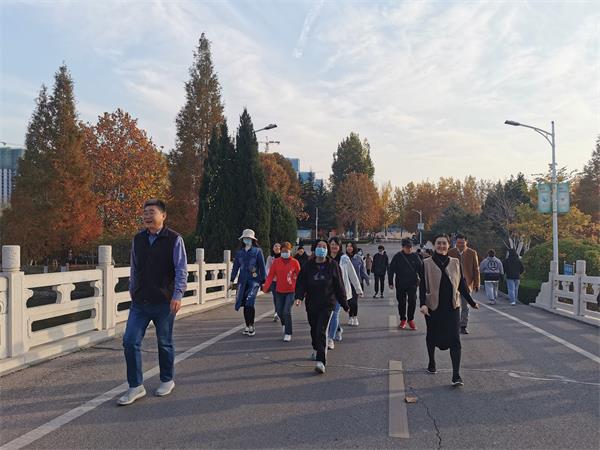 为丰富教职工业余生活,展现广大教职工健康积极的精神风貌,11月4日下午,我院教务分会举办以“增强身心健康,打卡最美校园”为主题的环校健步走活动。学院党委委员、宣传统战处处长倪斌及教务分会40余名教职工参加活动。