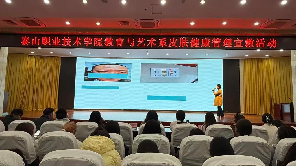 为帮助同学们科学认识肌肤问题,掌握正确的皮肤管理方法,一场别开生面的皮肤健康宣教义诊活动于2025年11月4日下午在图书馆报告厅成功举办。本次活动是教育与艺术系“双百双进”系列活动的重要一环,系部联合岱岳区皮肤病医院,共同为师生们献上了一份专业的健康关怀。