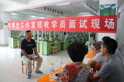 李博生大师工作室对本次实习学生十分重视,于7月8日工作室李清元总经理亲自来学校进行选拔,对学生进行了作品展示、专业知识问答等考核,最后确定了马佳宝、王东岳、张晓月、徐明灯四名同学。