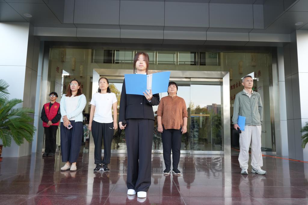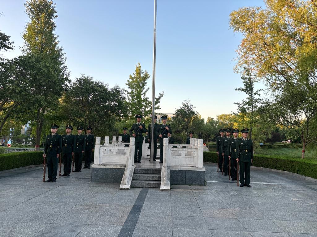 随着清脆的一声“正步走!”国旗护卫队肩扛礼宾枪,迈着铿锵有力的正步走向升旗台。伴随激昂的《义勇军进行曲》,鲜艳的五星红旗在朝阳下冉冉升起,全体人员身着整齐服装,肃立行注目礼,高唱国歌,目光紧紧追随国旗,现场气氛庄重肃穆。