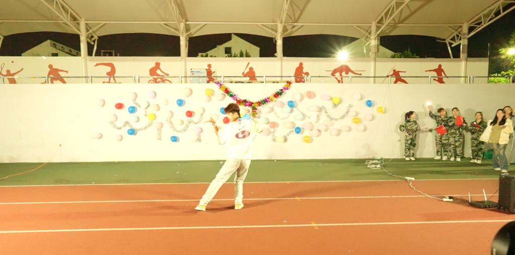 活动现场,草坪被点点荧光点缀,晚风与音符交织,氛围热烈而浪漫。随着主持人宣布开场,24级早教2班赵彦南率先登台,以自编舞蹈《傣雨悠悠》拉开音乐节序幕。他用灵动的身段、柔美的舞姿生动诠释傣族风情,每一个转身、每一次抬手都宛如雨中精灵,将傣民的温婉与灵动展现得淋漓尽致,独特的编排瞬间抓住全场目光,赢得满堂喝彩。