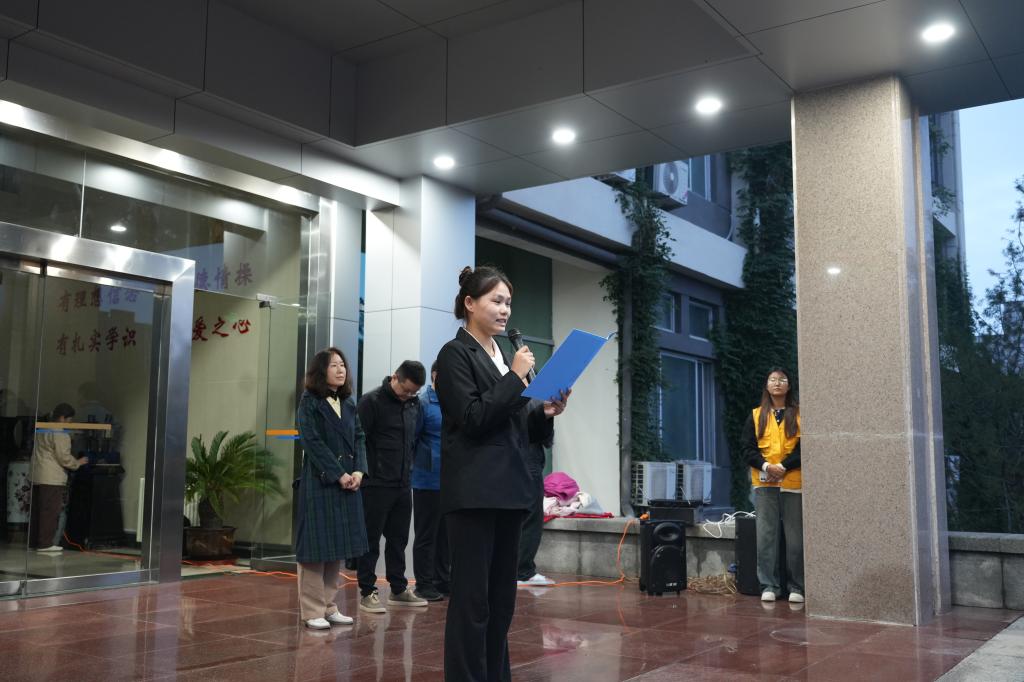 随后,教育与艺术系学生党支部书记张海声为本次仪式做出总结发言。在发言中,她对同学们提出了三点期望:做粮食安全的“守护者”,深化对国家粮食安全的责任认知;做勤俭节约的“行动派”,让“光盘”成为日常自觉;做法治精神的“践行者”,以《反食品浪费法》为准则,让节约从道德倡议升级为法律自觉。呼吁同学们做《反食品浪费法》的学习者、传播者与践行者。