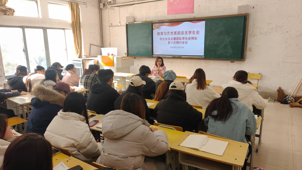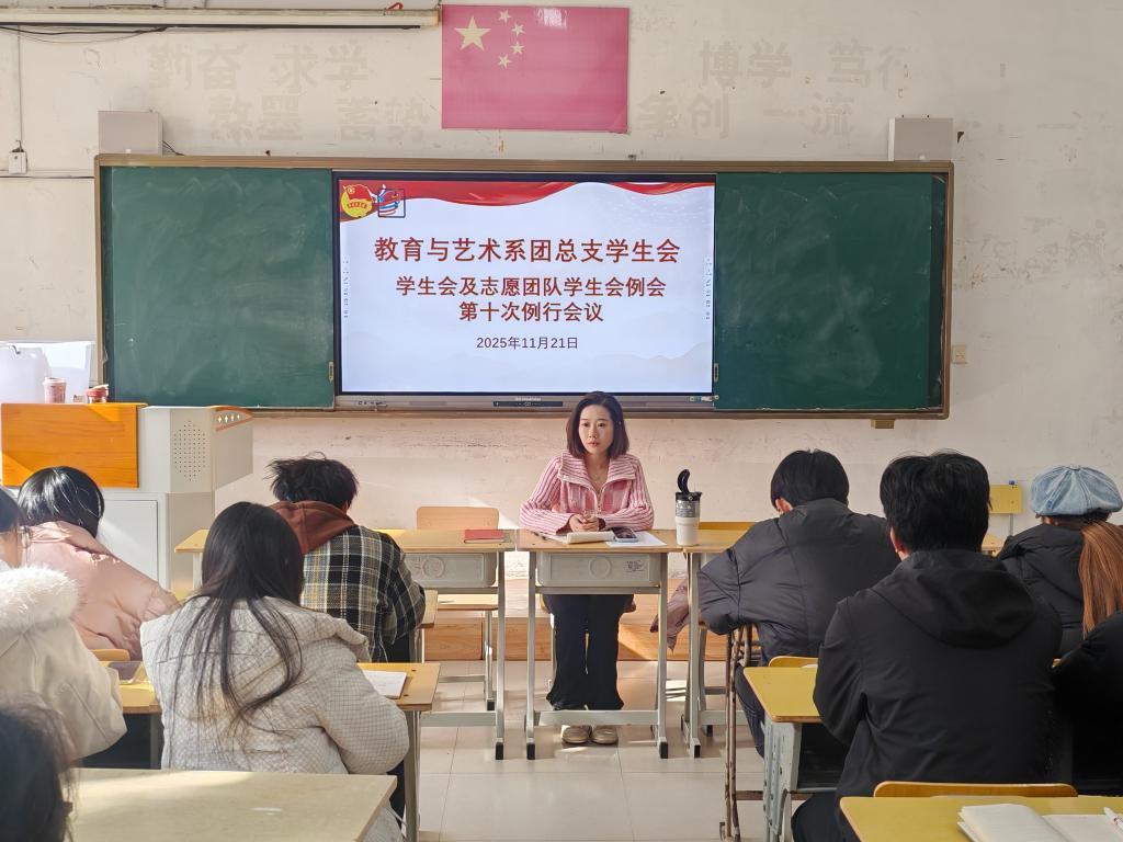 为进一步明确工作目标、强化部门协同,2025年11月22日,教育与艺术系学联学生会于明理楼205教室召开了本学期第十次例行会议,学生科老师牛婷婷出席会议,学生会部分成员参加。
