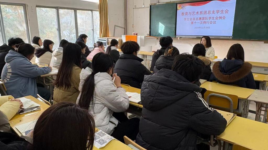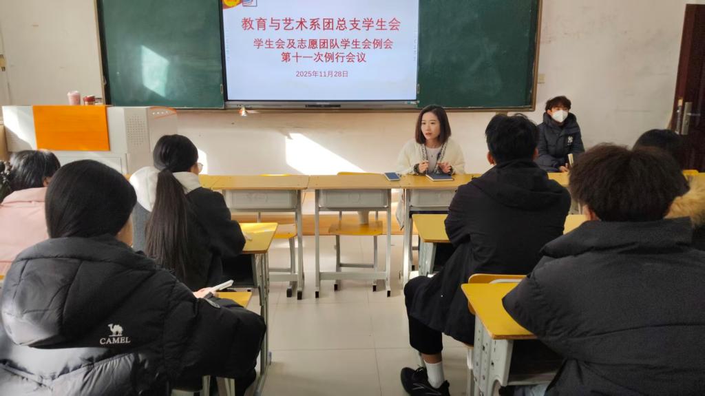 为优化各部门工作衔接流程,提升团队协作的高效性,2025年11月28日,教育与艺术系学联学生会在明理楼205室召开了本学期第十一次学生会例行会议,学生科老师牛婷婷出席会议,学生会部分成员参加。