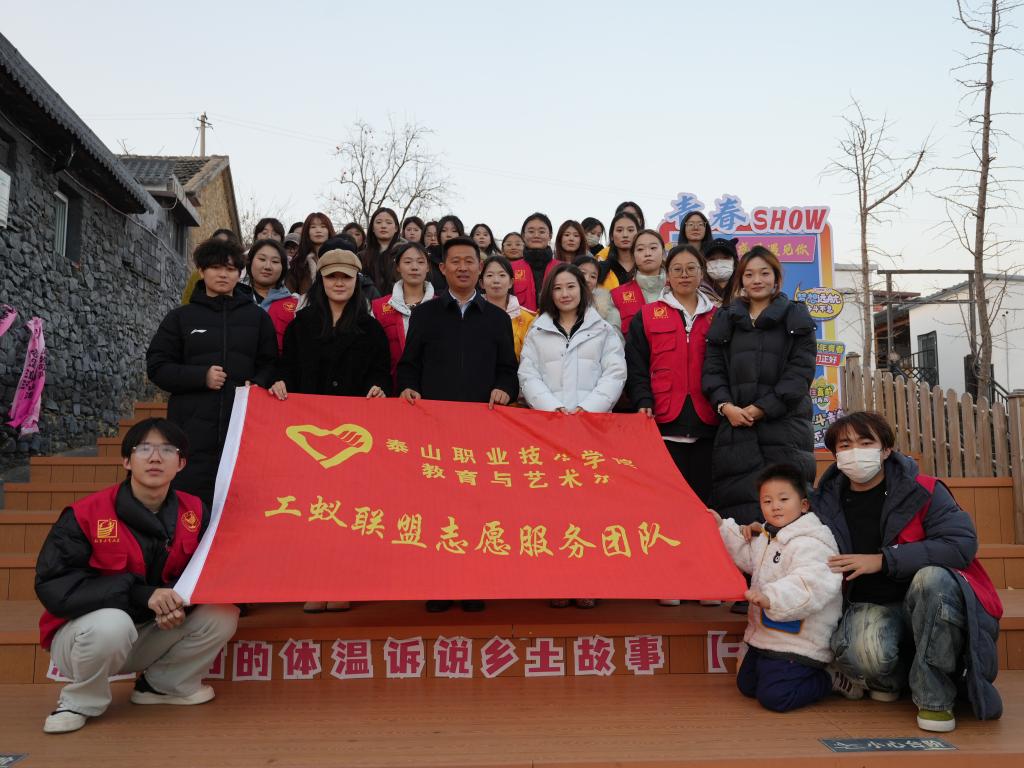 为深化校地资源联动,促进文化与乡土实践深度联合,11月30日,泰山职业技术学院教育与艺术系负责人老师带领同学们第三次赴白马石村,以“榴枝婀娜·青春绽放”为主题举办文艺汇演暨非遗文创市集活动。