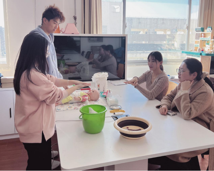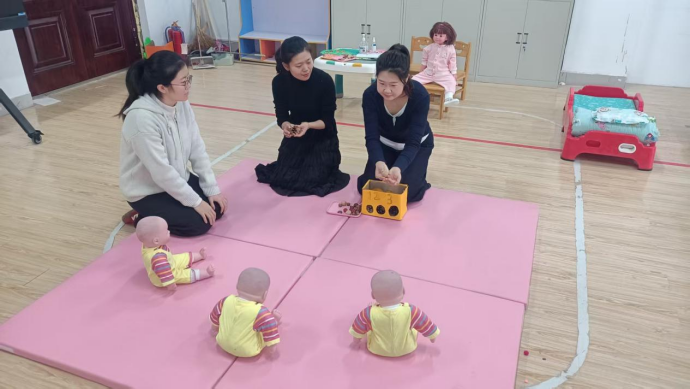 比赛现场,我校学子沉着冷静,自信从容。在技能实操环节,楚宇同学熟练演示的“海姆立克急救法”动作标准、流程清晰,展现了应对婴幼儿突发状况的专业素养;于绪晨、赵彦南同学在“婴儿排气操”项目中,手法轻柔规范,充满爱心,完美体现了保育师应有的耐心与技能。同学们出色的现场表现,赢得了评委们的一致认可。