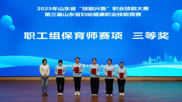 2025年11月16日,山东省“技能兴鲁”职业技能大赛——第三届山东省妇幼健康职业技能竞赛决赛圆满落幕。我校学子在比赛中沉着应战,发挥出色,凭借扎实的理论基础和娴熟的操作技能,在众多参赛队伍中脱颖而出,共斩获二等奖两项、三等奖三项,教师组同样收获佳绩,充分展现了我校在婴幼儿保育与教育领域卓越的教学成果和人才培养水平。