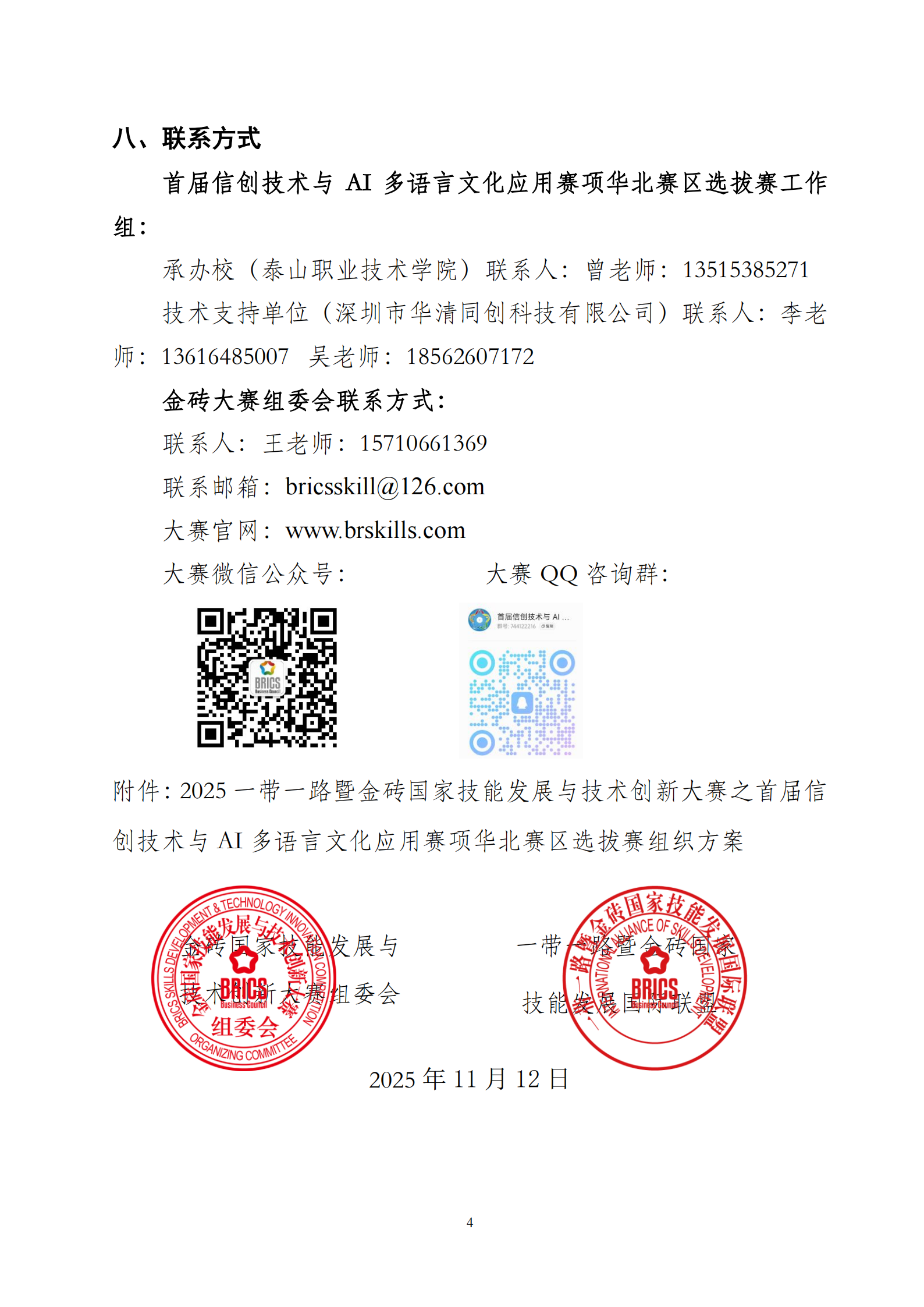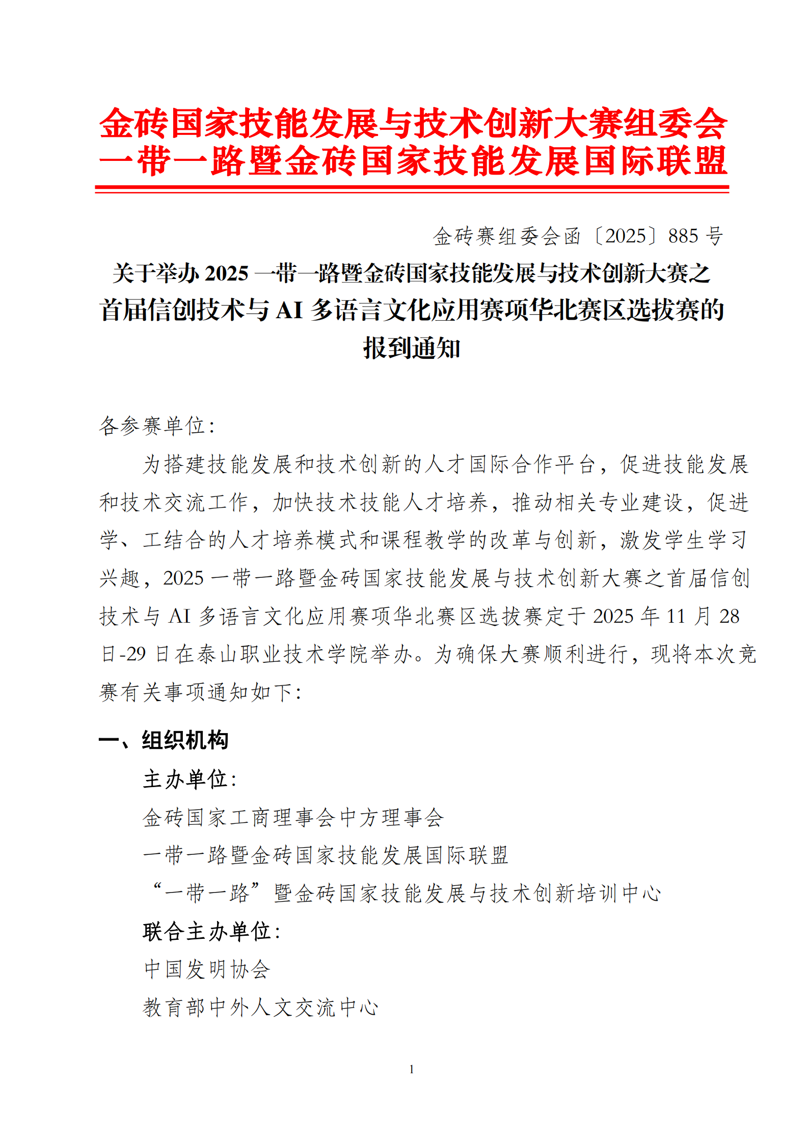 关于举办2025一带一路金砖国家技能发展与技能创新大赛之首届信创技术与AI多语言文化应用赛项华北赛区选拔赛的报到通知