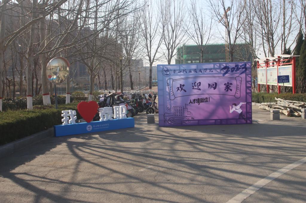 营造氛围、迎接学子。为了给返校学生打造一个整洁、舒适、安全的学习环境,学院全体教职工以饱满的热情投入到开学准备工作中,学生公寓空气能改造、教学试验设备检查、清扫校园路面、教室宿舍卫生消杀通风、教学区域安全隐患排查......一切都是为了新学期用实际行动彰显责任与担当。从寒冬腊月到春风扑面,一张张青春的面孔使沉寂已久的校园再次热闹起来。整洁美丽的校园环境,美味可口的食堂饭菜,干净温馨的宿舍楼宇,无一不展现学校期待学生返校的喜庆氛围。学院领导用一张张热情的笑脸,一句句暖心的话语,来迎接学生归家。“欢迎回家”的大幅打卡背景板、“腊月离校二月回,惊问小胖你是谁”、“2023与泰职同行,遇见更好的自己”、“我在泰职很想你”、“我爱泰职”等条幅标语,都能让学生体会到回家的感觉。新学期、新起点、新希望,最美的相见是在泰职遇见你,欢迎同学们“回家”!希望同学们在新的学期赓续奋斗,不负青春,在泰职创造出精彩的人生。