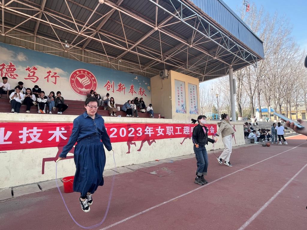 与此同时,庆“三八”女职工趣味运动会也在学院运动场如火如荼进行。运动会设有1分钟跳绳和九宫格飞盘投准两个项目, 200多名女教职工参加了趣味比赛活动。竞技与娱乐相互结合,青春与活力共同飞扬,女教职工们放下手头的工作,走出办公室,走向运动场,既锻炼了身体,也加强了广大女教师之间的交流互动,增进了友谊,充分展示了全院女教师奋发有为、聚力争先的靓丽风采。【供稿:工会 初审:王延凯 复审:贾鲁音 终审:李伟】