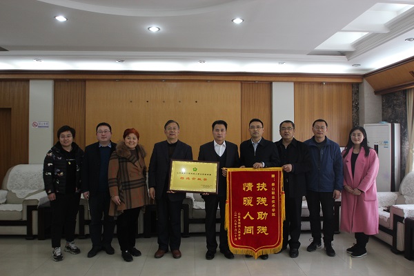 4月12日下午,山东省残疾人联合会授予我院山东省第六届残疾人职业技能竞赛“特殊贡献奖”奖牌和“扶残助残,情暖人间”锦旗。泰安市残疾人联合会党组成员、副理事长李广喜,泰安市残疾人康复中心书记孙慧敏等,党委副书记、院长毕于民,党委副书记、副院长马培安,教务处相关负责同志参加授牌授旗仪式。李广喜代表山东省残疾人联合会充分肯定了我院为山东省及泰安市残疾人事业做出的贡献。【供稿:教务处 编辑:陈雷】