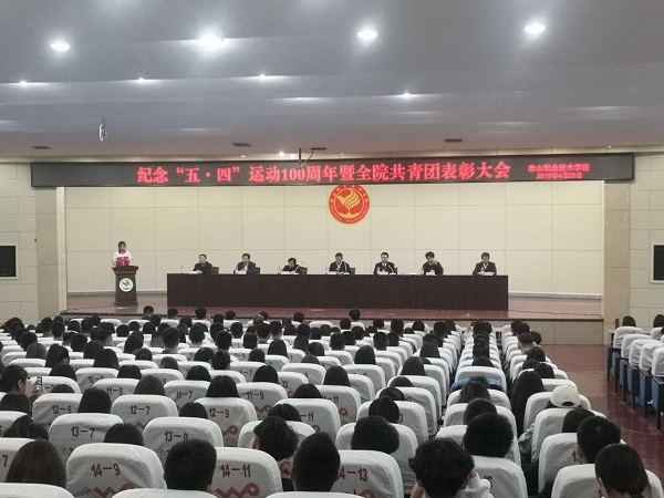 4月29日下午,我院在图书馆报告厅举行纪念五四运动100周年暨全院共青团表彰大会。党委副书记、院长毕于民,党委副书记、副院长马培安,党委委员、纪委书记项岚,党委委员、副院长张小烨,党委委员、机关党委专职副书记田昌江,党委委员、组织人事处处长亓玉华,党委委员、宣传统战处处长倪斌,各系部处室相关负责同志,500余名师生参加,马培安主持会议。