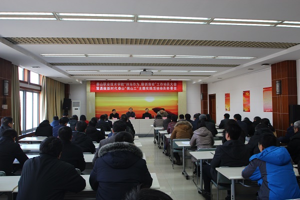 张勇华作重要讲话。他指出,2018年以来,学院坚持以习近平新时代中国特色社会主义思想为指导,在市委的坚强领导下,以党建工作为统领,以优质院校创建、教学诊改试点为抓手,办学水平和质量进一步提升。学院在人才培养、科学研究、社会服务、文化传承创新、国际交流合作等方面都有了新的发展,这些都是践行新时代泰山“挑山工”精神的生动实践和具体表现。