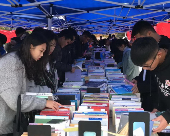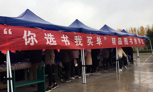 11月6日,学院图书馆携手馆配图书中标供应商,在图书馆前青春广场举办了2018年“好书到身边——你选书,我买单”精品新书展活动。