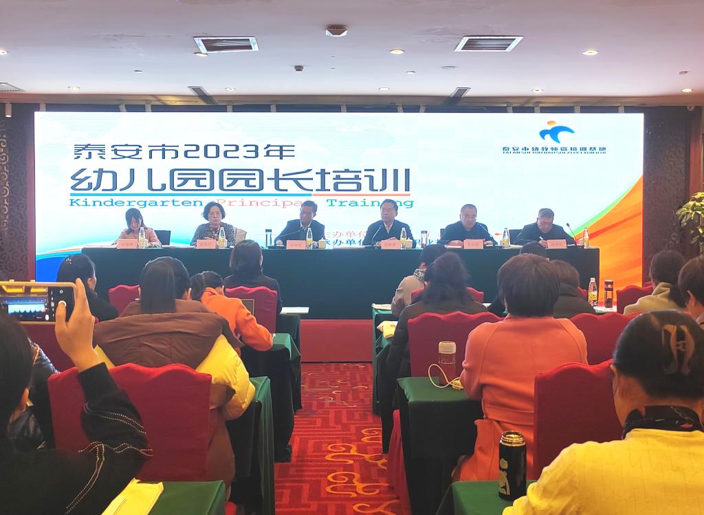 人生百年,立于幼学。为进一步加强幼儿园教师队伍建设,提高幼儿园管理水平,促进幼儿园教师、保育员专业化发展,提高思想政治素质和教学能力水平,泰安市教育局主办、泰山职业技术学院(泰安市幼教师资培训基地)承办泰安市2023年幼儿园园长集中培训班。11月14日上午,开班仪式在泰山帝苑酒店会议厅召开。