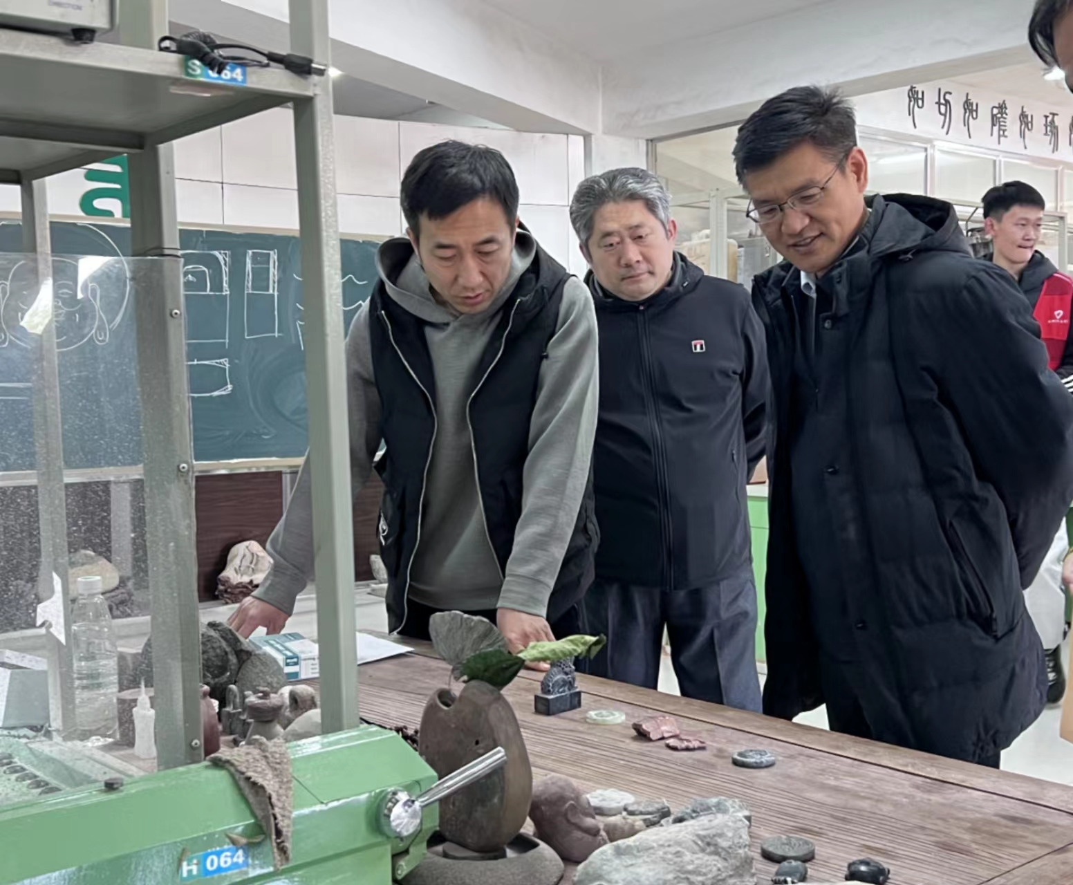 会后,在张新刚陪同下参观了学生公寓、玉雕工作室、大师工作室、泰山书院、猫九创业基地、大学生心理健康教育中心以及财经系线上直播课堂。