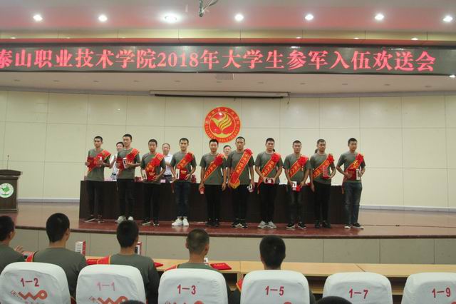 毕于民代表学院向应征入伍大学生表示热烈祝贺。他介绍了我院近几年国防教育和征兵工作情况,对即将走入军营的大学生提出要求,希望他们到部队后继续加强学习,提高政治素质;要忠于职守,苦练军事技能;严守纪律,尽快适应部队生活,及早完成由大学生到合格军人的转变,把泰职人“艰苦奋斗,自强不息”的光荣传统带到部队、融入军营,早日在部队立新功、创大业,为学院争得荣誉。